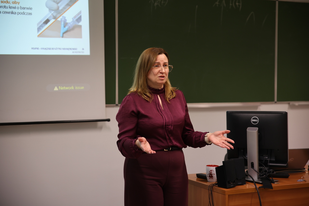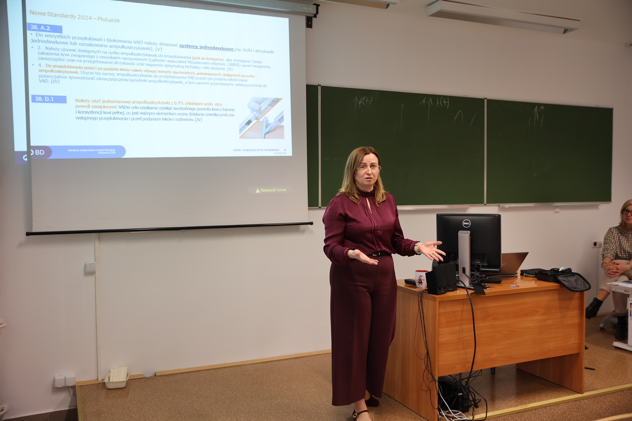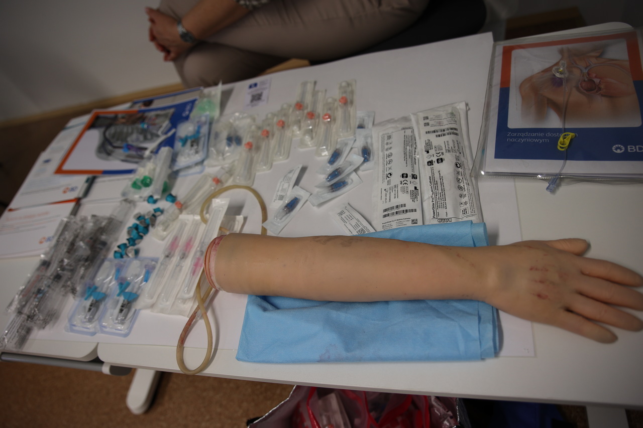Podczas spotkania omówiono zagadnienia związane z zapobieganiem zakażeniom odcewnikowym oraz prawidłową pielęgnacją i utrzymaniem dostępów naczyniowych, takich jak wenflon, Midline czy PICC. Prezentowane treści opierały się na najnowszych wytycznych INS, co pozwoliło uczestnikom zapoznać się z aktualnymi standardami obowiązującymi w praktyce medycznej.