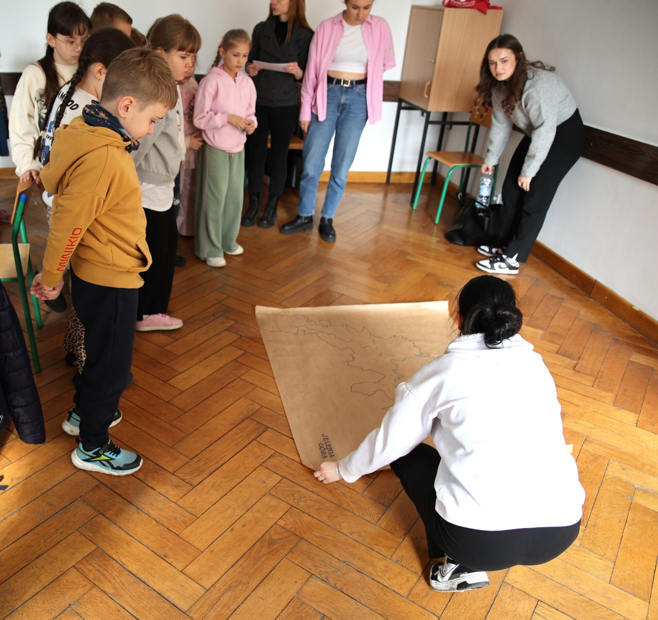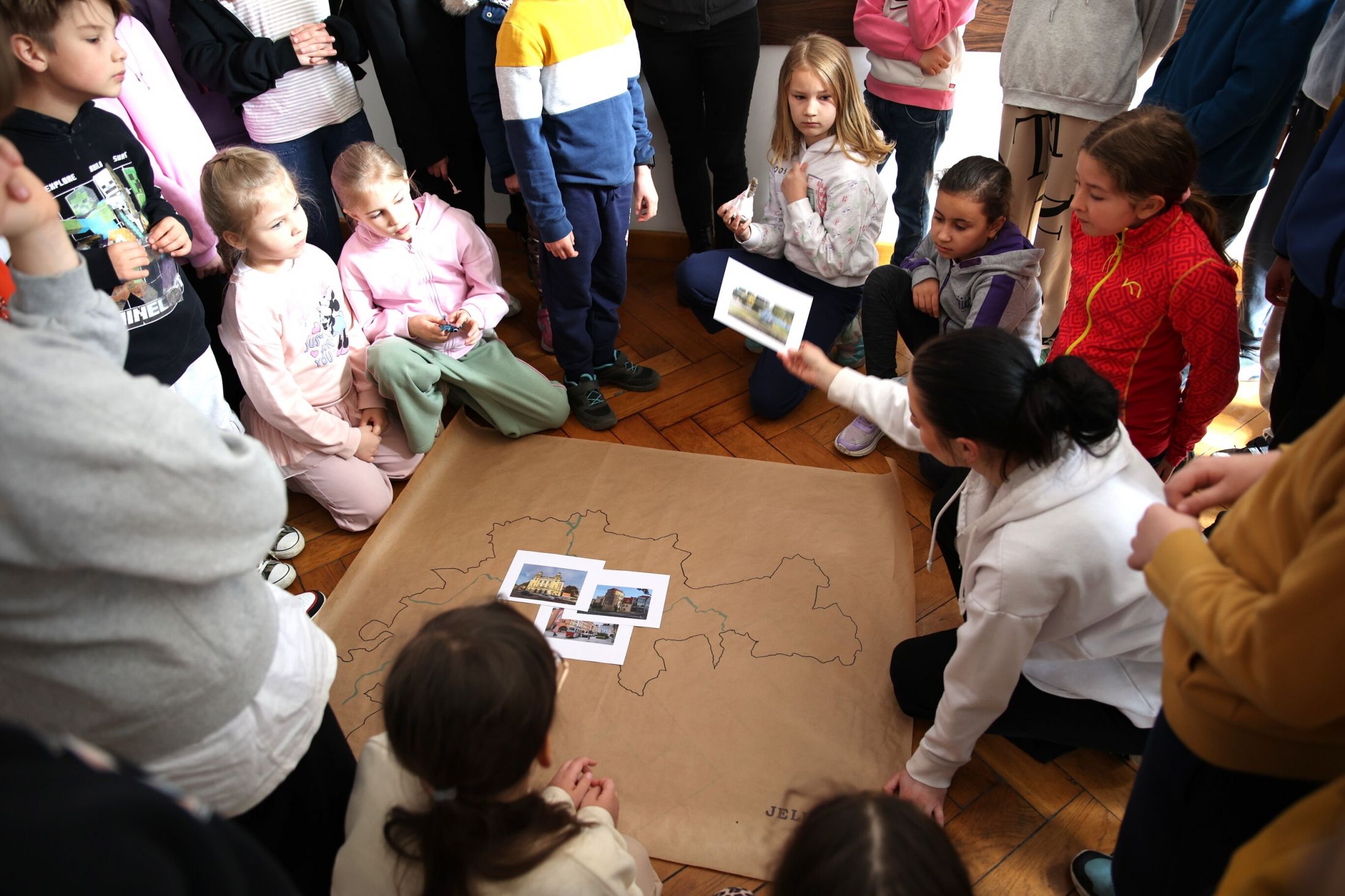 Dodatkowo dzieci wzięły udział w praktycznym ćwiczeniu, podczas którego uczyły się rozpoznawać charakterystyczne zabytki Jeleniej Góry, nazywać je oraz wskazywać ich lokalizację. Kolejnym etapem było umieszczanie tych obiektów na mapie miasta, co pozwoliło lepiej zrozumieć ich znaczenie w przestrzeni miejskiej.