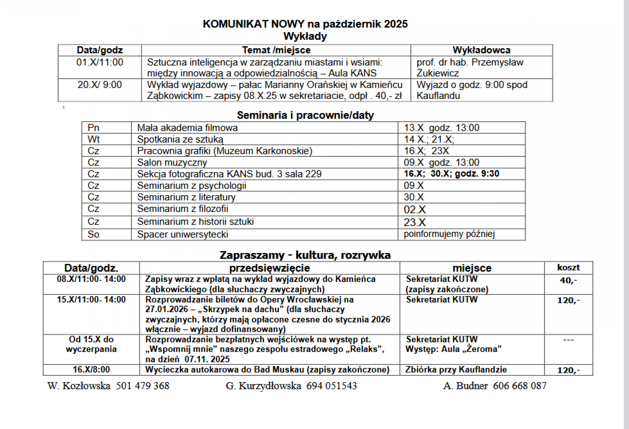 Wejściówki dostępne dla wszystkich słuchaczy KUTW.